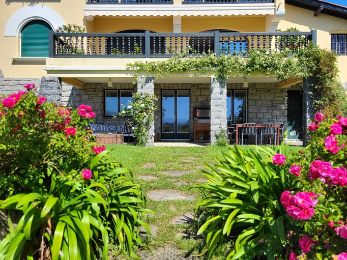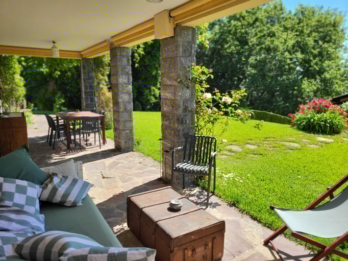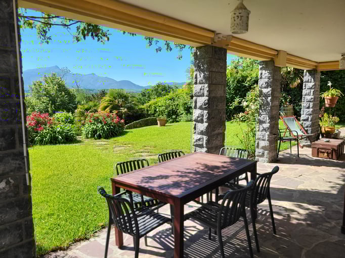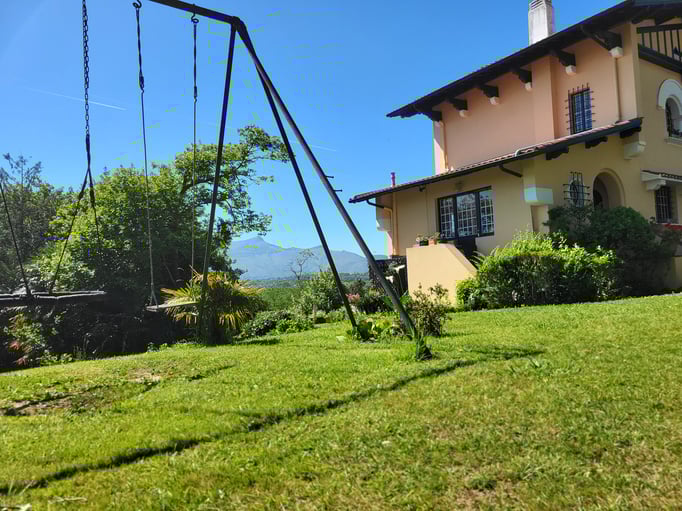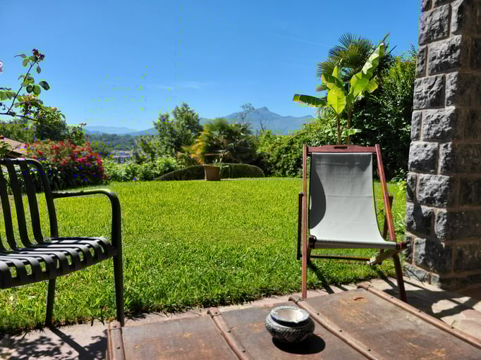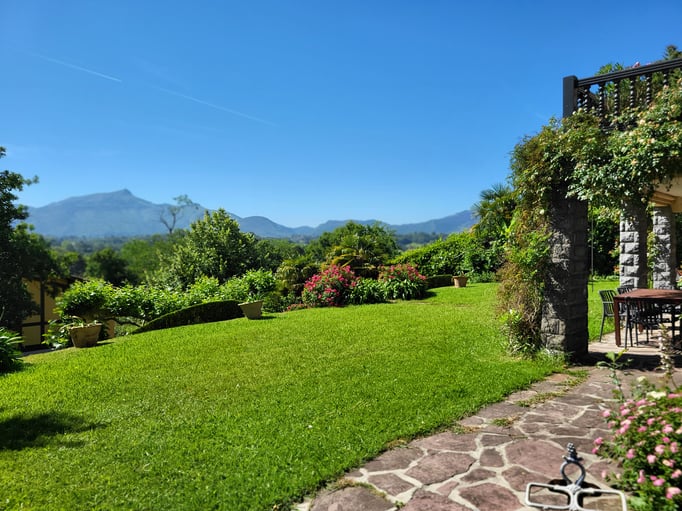 Accès et jouissance du jardin latéral, avec vue sur la Rhune et les montagnes