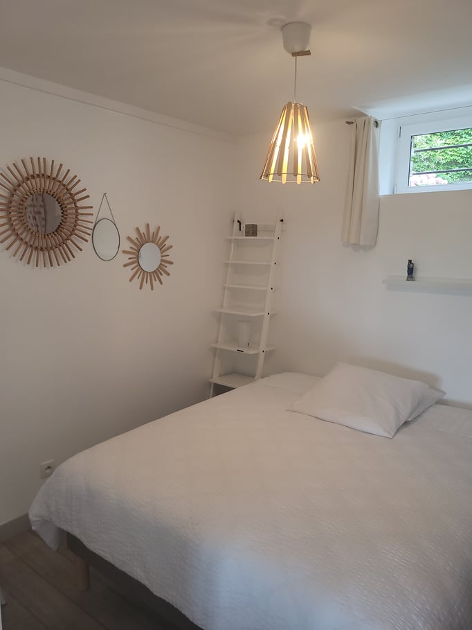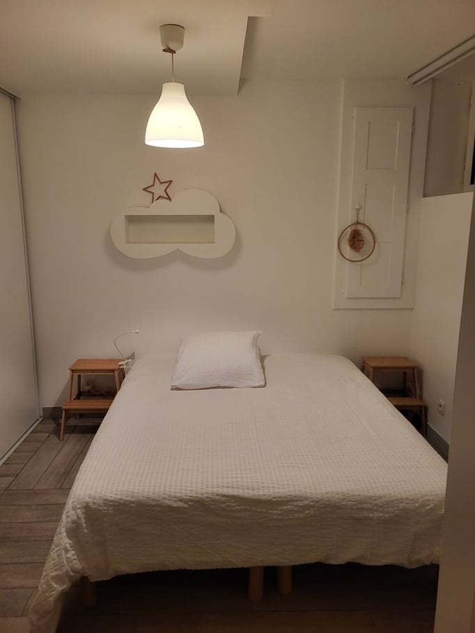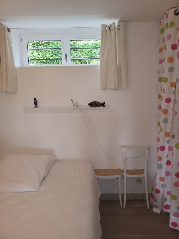 1 chambre avec lit 160 cm, douche et lavabo privatifs (miroir, sèche-cheveux)